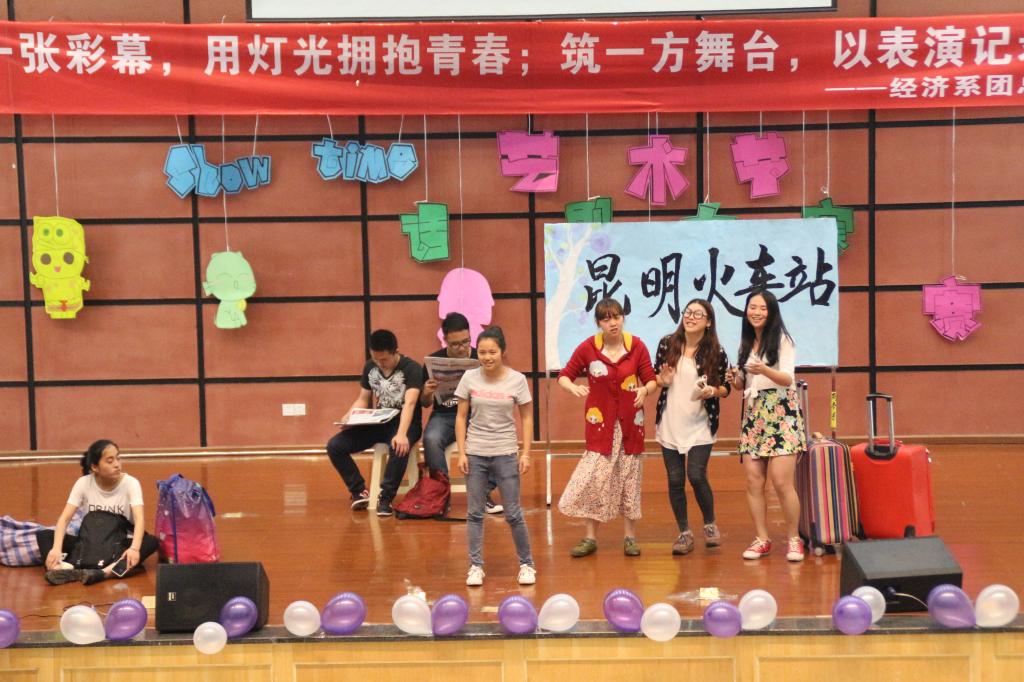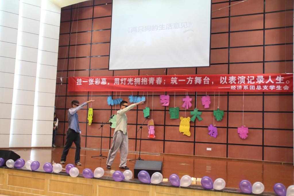 (通讯员 姚惠)挂一张彩幕,用灯光拥抱青春;筑一方舞台,以表演记录人生。重庆工商大学融智学院第六届“SHOW TIME”艺术节“炫彩青春”话剧大赛初赛于2015年4月20日中午12点在学术报告厅顺利开展。此次活动由重庆工商大学融智学院团委主办,经济系团总支学生会承办。担任本次大赛的评委是团委副书记李刚,团委干事马凌凤;到场的嘉宾有院,六系学生会,社联,大自委,党服,新闻中心,艺术团各主席团们。